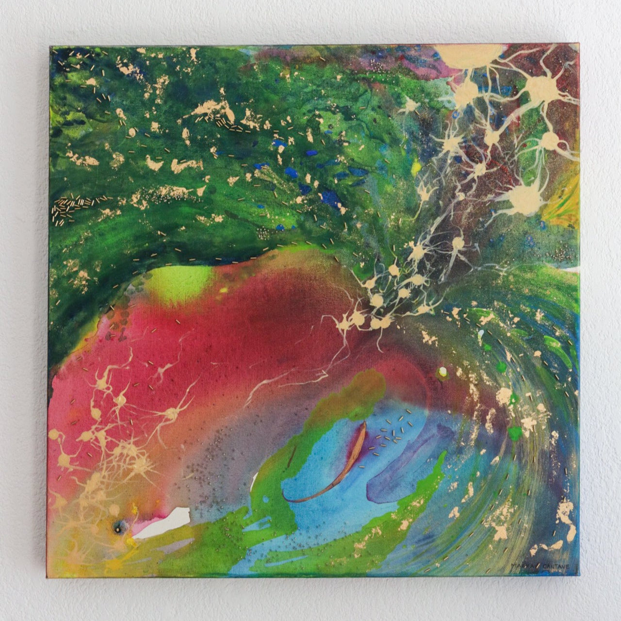 60 x 60 cm. Acrylique et techniques mixtes sur toile de coton