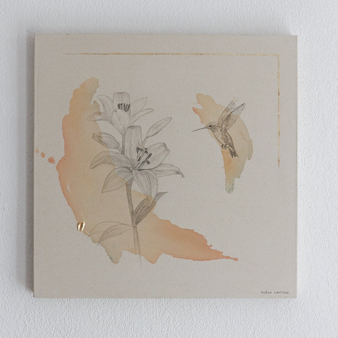 60x60 cm. Acrylique, graphite et feuille à dorer sur toile de coton.